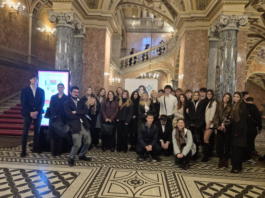 As part of Petőfi Cultural Program, we had the opportunity to see the performance titled Contemporary Adventure at the State Opera House.We arrived with the 11th class for the performance starting at 10 am, in the company of 32 students + 3 members of the staff. Upon entering the building, it became clear that we had made a good decision, the students were immediately captivated by the patina of the building. We watched the performance in two acts. In the first act, we watched a performance titled Vortex - a performance combining modern and classical ballet elements set to the music of Philip Glass by choreographer András Lukács. Many of our students were immediately trown in at the deep at as their first ballet experience, so at the end of the act they were relatively enthusiastic about asking their questions about the genre.