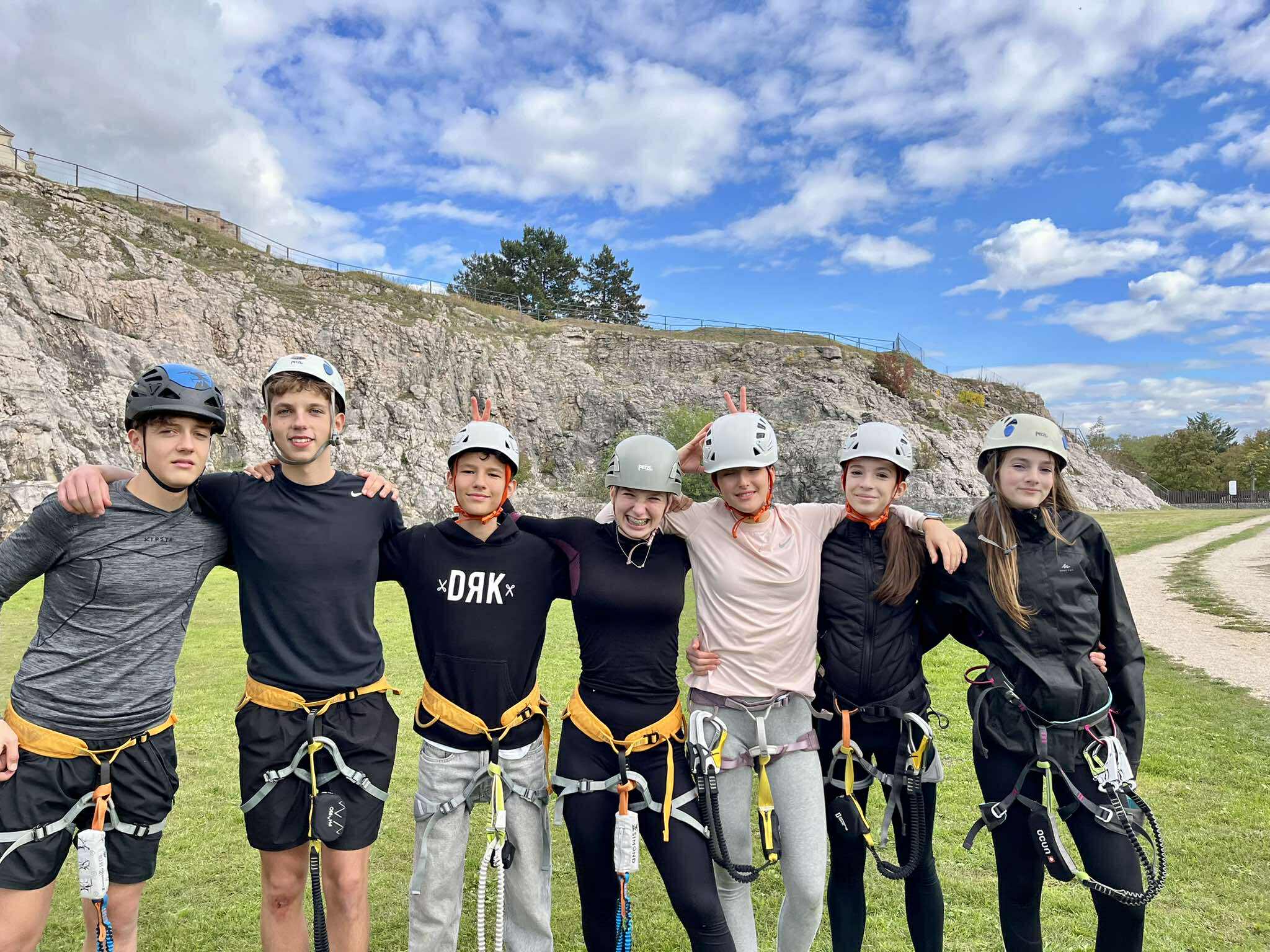 Helyi túravezető segítségével kipróbáltuk a Kálvária dombon létesített via ferrata tanpályát, megtanulhattuk a felszerelést, valamint hogyan járjuk be a pályát biztonságosan. A terveink között szerepel egy hosszabb, nehezebb útvonal felfedezése is.